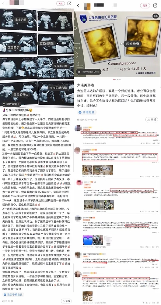 (美琳达四维彩超在大众点评、小红书上孕妈好评分享)