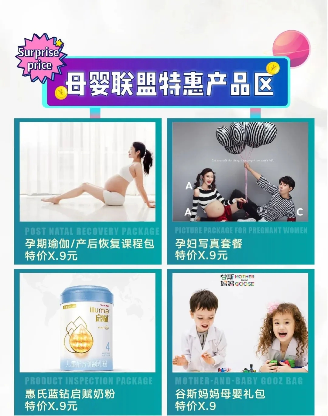 孕妇写真、奶粉、孕期瑜伽/产后恢复课程包等