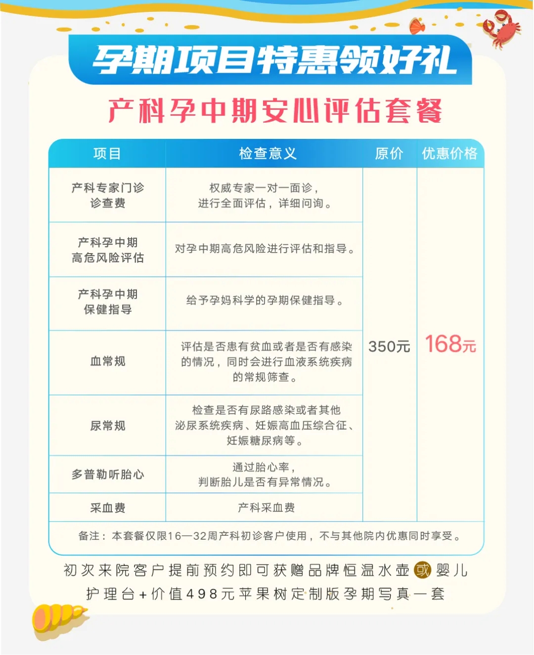 同时选择以下任意一项优惠产检项目